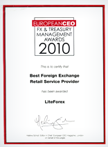 Menurut hasil pemungutan suara yang dilakukan di website resmi www.europeanceo.com dalam rangka «FX & Treasury Management Award» kontes, kelompok LiteFinance perusahaan memenangkan nominasi «Best Valuta Asing Retail Service Provider»